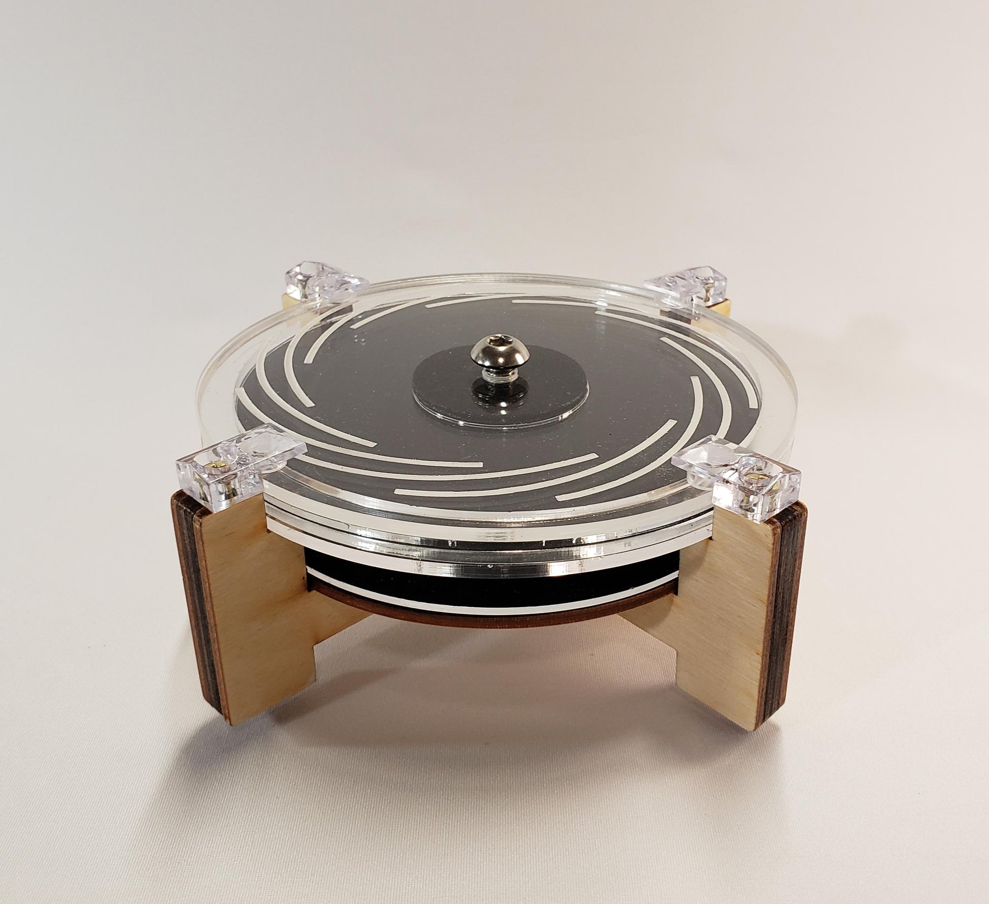The Aether Disc generates a golden bio-energy field that supports enhanced meditation, inspiration, and creative thought. The disc can be used on the desktop, as a table centerpiece, or mounted on the wall. It does not require batteries or any external power source.