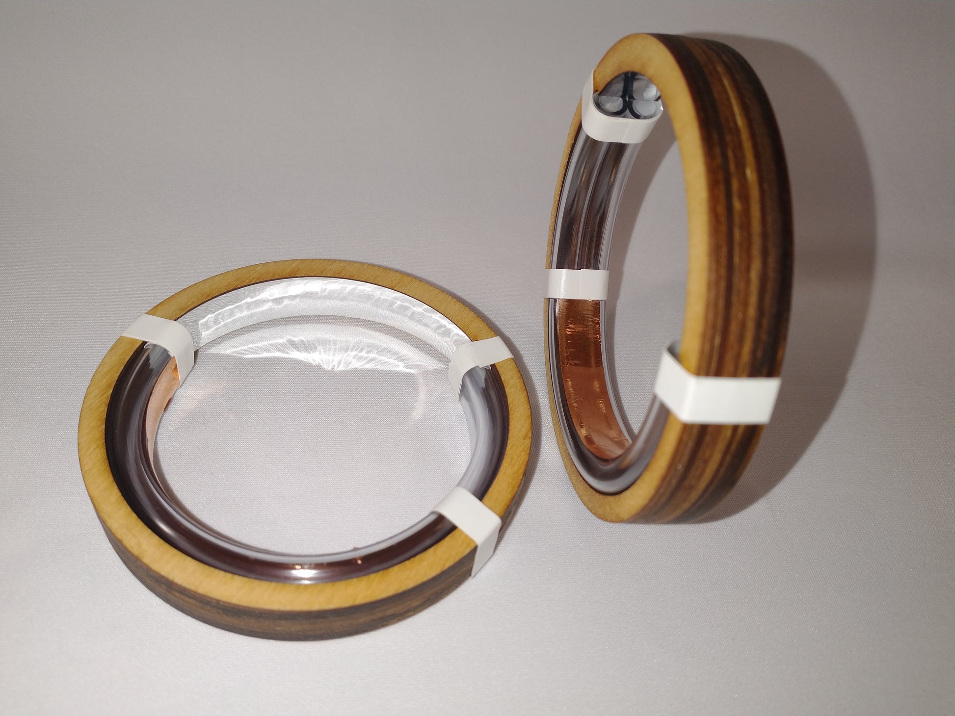 The Phyrll Lens is a simple, hand-held device that can help anyone experience the unseen world. It creates a circular flow of subtle energy/phyrll inside the ring. The circle becomes a vortex which draws energy in on one side and pushes energy out the other side. This energy flow is intended to stimulate growth in plants. Many people can sense the energy directly, making the lens useful for unseen energy demonstration purposes. The outer diameter of each lens is 3.375".